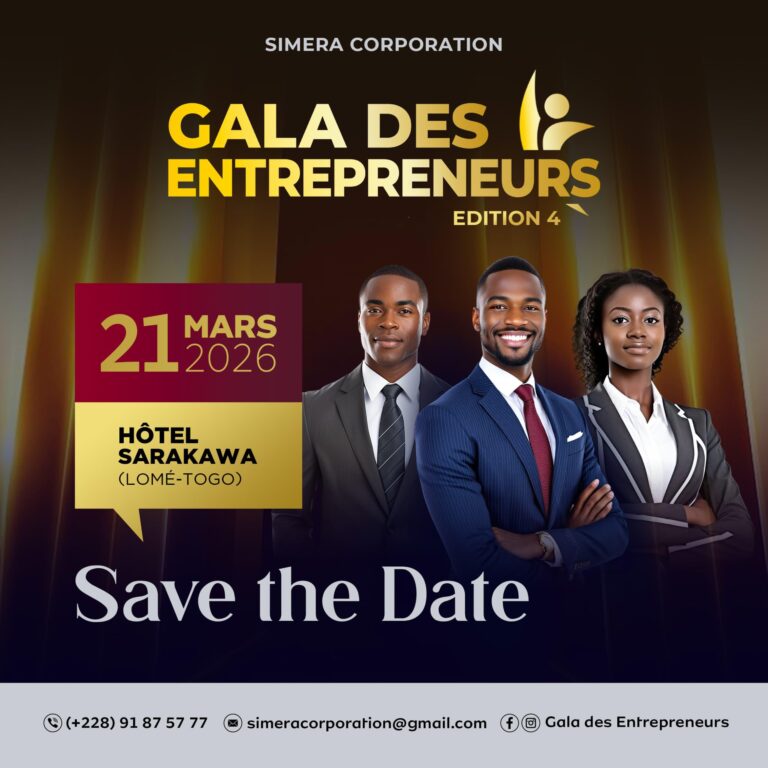 Lomé, 15 décembre 2025 – Le Togo connaît un dynamisme entrepreneurial croissant, porté par des jeunes innovants et créatifs. Dans ce contexte, « Simera Corporation », spécialisée dans l’organisation d’événements, organise la 4e édition du « Gala des entrepreneurs », un rendez-vous annuel dédié aux entrepreneurs.
